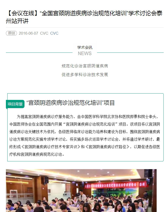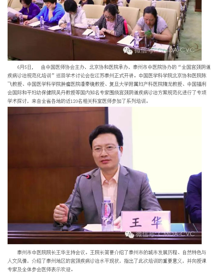 “全國宮頸陰道疾病診治規(guī)范化培訓(xùn)”學(xué)術(shù)討論會(huì)泰州站開講-----轉(zhuǎn)自CVC