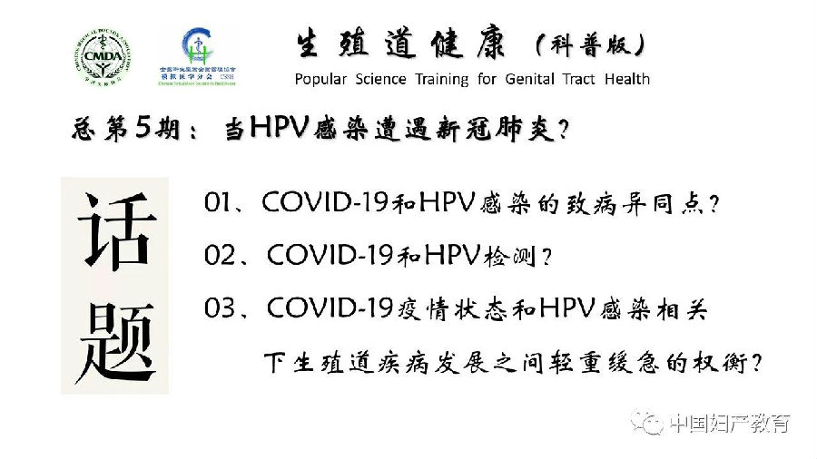 【直播主題】 當HPV感染遭遇新冠肺炎?