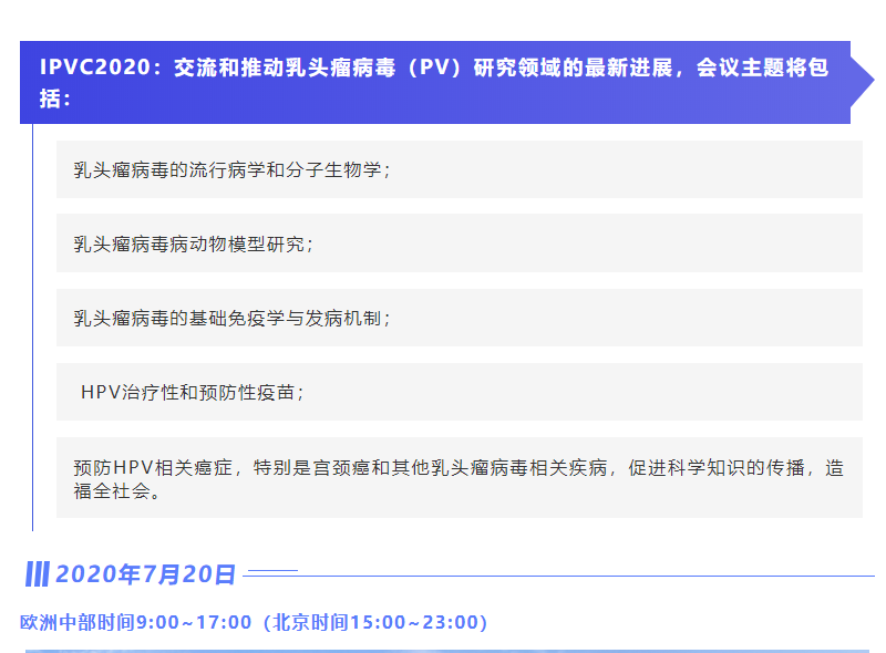 第33屆國際乳頭瘤病毒大會(huì)(IPVC 2020)7月20日快訊