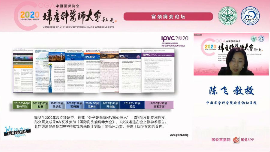 北京協(xié)和醫(yī)院陳飛教授作了《HPV相關(guān)疾病的研究進(jìn)展、預(yù)后因素和治療》的專題報(bào)告。報(bào)告介紹了第33屆國際HPV學(xué)術(shù)大會(huì)的詳細(xì)內(nèi)容和最新成果《瑞貝生,對(duì)高危HPV持續(xù)性感染的非創(chuàng)傷臨床干預(yù)》,該研究揭示了瑞貝生能有效抑制TC-1和Hela細(xì)胞中HPV E6、E7致癌基因的表達(dá),在小鼠模型中能夠顯著抑制E6/E7誘導(dǎo)的腫瘤的生長,進(jìn)一步證實(shí)了E6、E7致癌基因是瑞貝生的作用靶點(diǎn);報(bào)告還分享了“瑞貝生真實(shí)世界研究的臨床觀察”試驗(yàn)結(jié)果,研究數(shù)據(jù)為“瑞貝生作為清除HPV持續(xù)性感染非創(chuàng)傷性治療干預(yù)臨床方案” 提供了真實(shí)世界研究的支撐。這個(gè)報(bào)告吸引了2萬9千多名專業(yè)人士在線觀看。