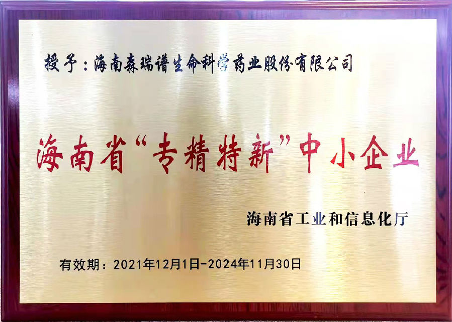 為深入貫徹落實習近平總書記關于培育一批“專精特新”中小企業(yè)的重要指示精神,近日,海南省政府授予瑞貝生?(REBACIN)公司海南森瑞譜生命科學藥業(yè)股份有限公司“海南省‘專精特新’中小企業(yè)”,并予以授牌。