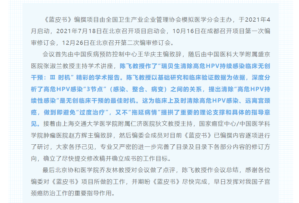《中國(guó)子宮頸癌三級(jí)規(guī)范化防治現(xiàn)狀(藍(lán)皮書)》第三次編審修訂會(huì)成功召開