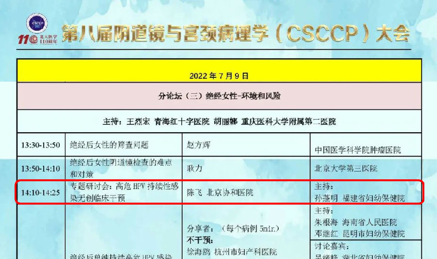 7月9日下午14:10-14:25在分論壇三由陳飛教授主講的專題會上將分享瑞貝生最新成果《高危HPV持續(xù)性感染無創(chuàng)臨床干預》。