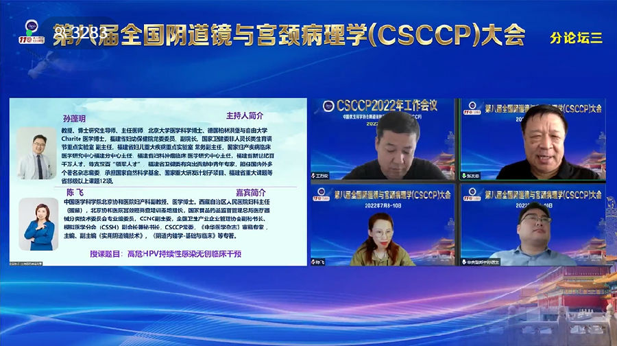 2022年7月9日-10日,第八屆全國陰道鏡與宮頸病理學(xué)(CSCCP)大會(huì)在北京大學(xué)人民醫(yī)院陸道培學(xué)術(shù)報(bào)告廳以現(xiàn)場和線上的形式開幕!本次大會(huì)的主題為:“推進(jìn)下生殖道病變的精細(xì)化管理”,包括一個(gè)主論壇:加強(qiáng)下生殖道病變精細(xì)化管理;六個(gè)分論壇:下生殖道病變熱點(diǎn)論壇、年輕女性論壇、絕經(jīng)后女性論壇、特殊人群論壇、外陰陰道肛周病變論壇,以及宮頸癌防治新技術(shù)論壇。來自全國婦產(chǎn)科及相關(guān)專業(yè)的學(xué)員通過線上形式參加了會(huì)議,線上直播共計(jì)觀看人次達(dá)2萬人次。