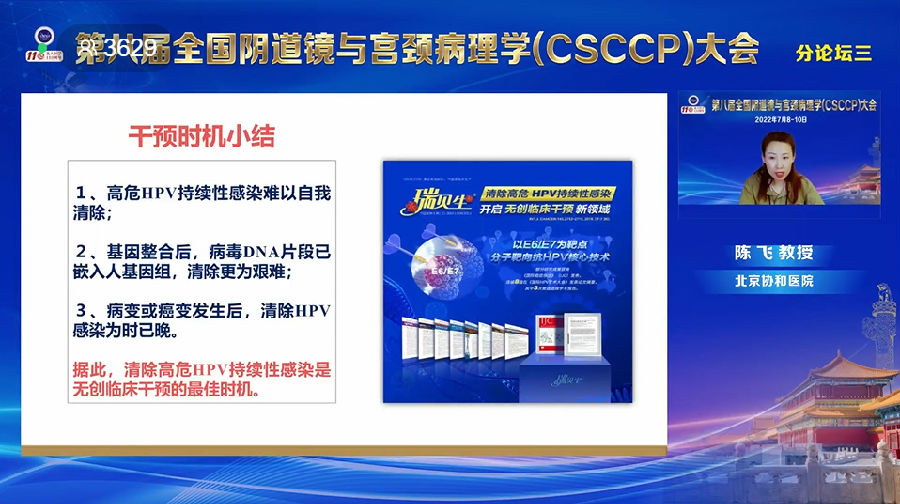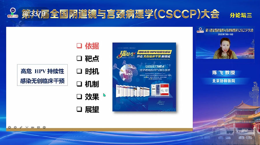 本次大會(huì)上,由中國醫(yī)學(xué)科學(xué)院北京協(xié)和醫(yī)院陳飛教授主講的專題報(bào)告《高危HPV持續(xù)性感染無創(chuàng)臨床干預(yù)》獲得與會(huì)專家廣泛關(guān)注。