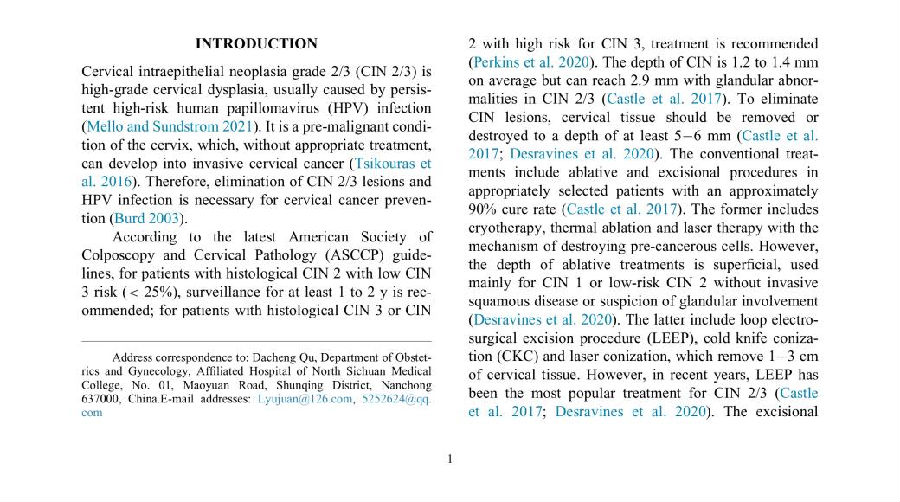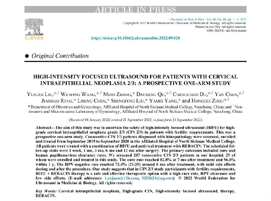 《高強(qiáng)度聚焦超聲治療CIN 2/3:一項(xiàng)前瞻性單臂研究》(IF:3.694,2022年10月22日)。