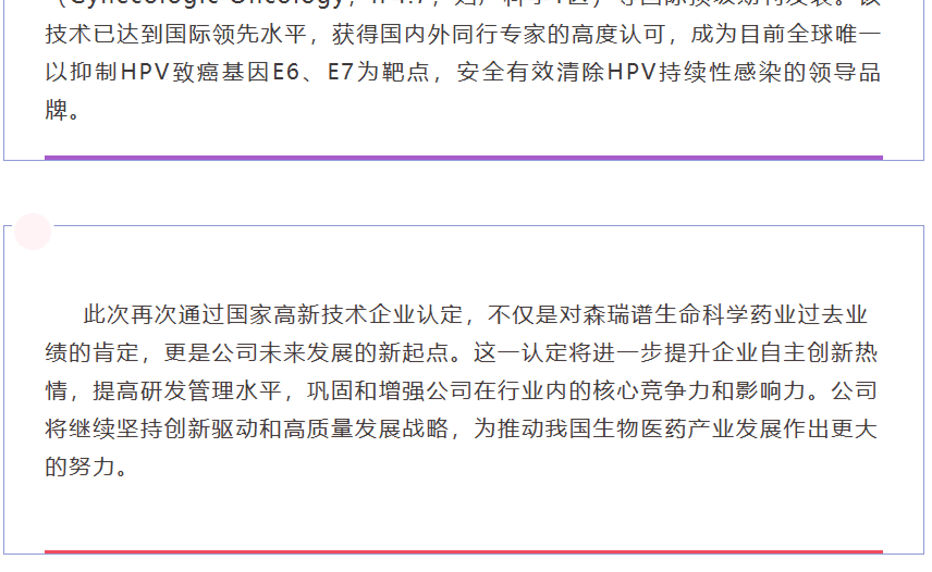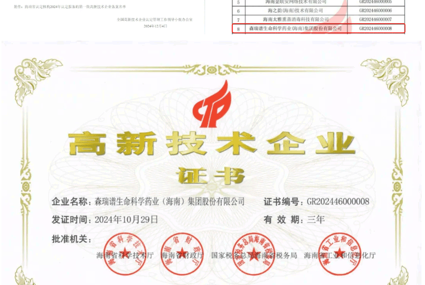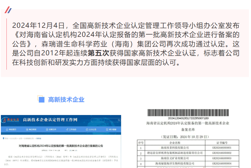 森瑞譜生命科學藥業(yè)第五次通過國家高新技術企業(yè)認證