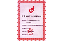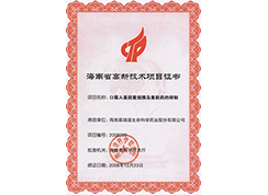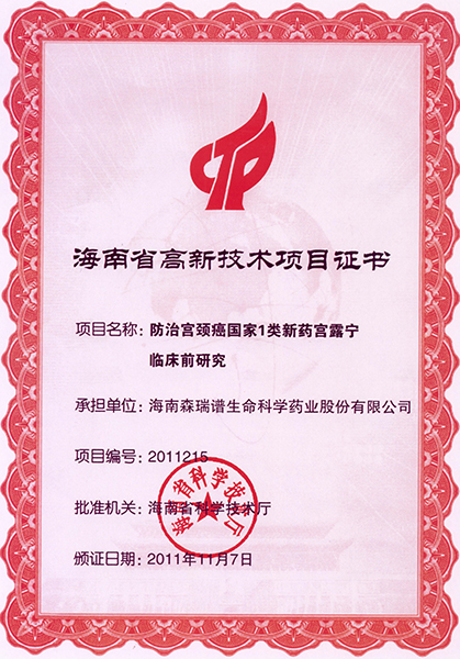 《防治宮頸癌國家1類新藥宮露寧臨床前研究》海南省高新技術項目證書