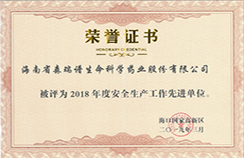 《2018年度安全生產(chǎn)工作先進單位》榮譽證書